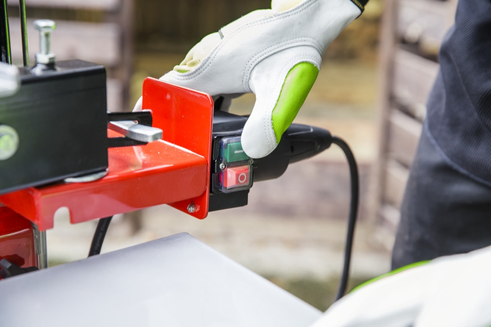 Navzdory obouručnímu ovládání, bezpečnostním prvkům a souvisejícímu snížení rizika, doporučujeme při práci se štípačem nosit bezpečnostní obuv, obranné brýle a rukavice. Při provozu se ujistěte, že je štípač dřeva postaven na pevný a rovný povrch.